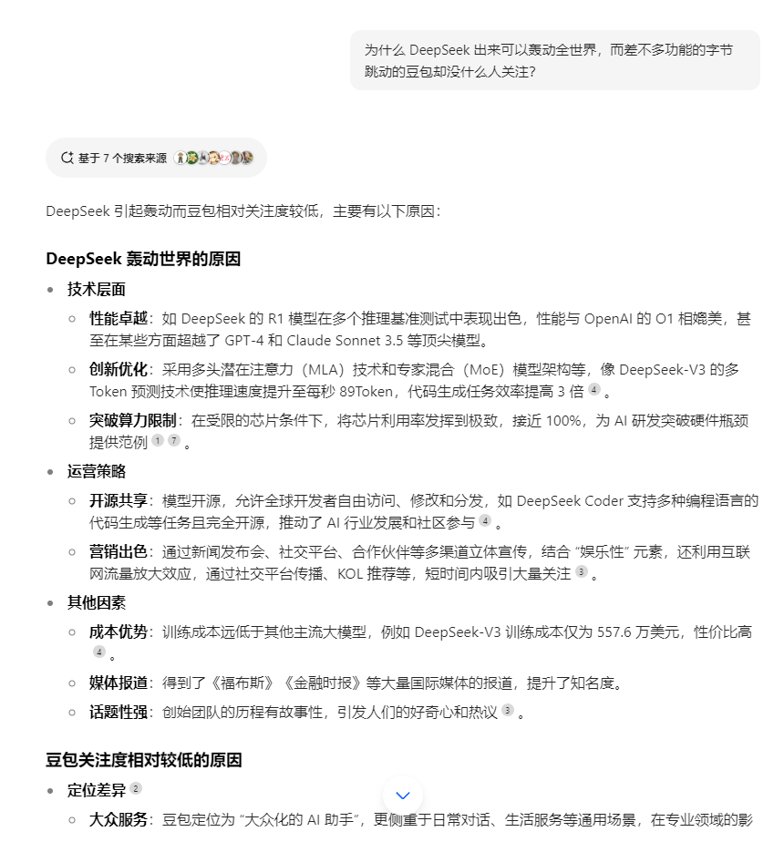 毕竟,以我可怜的见识,我也知道,豆包目前也就是个更加好用点儿的百度,她提供给我的一切,都是在网上到处抓来的。