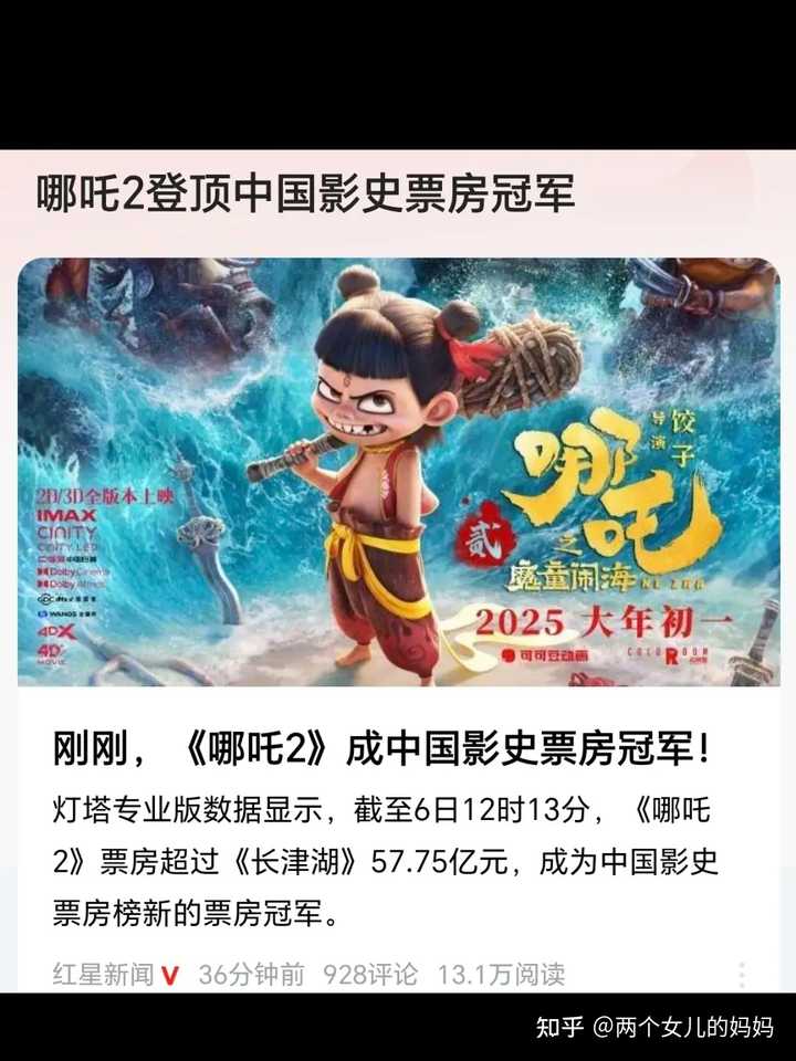 希望吒2能成为中国第一部票房百亿级别的电影。