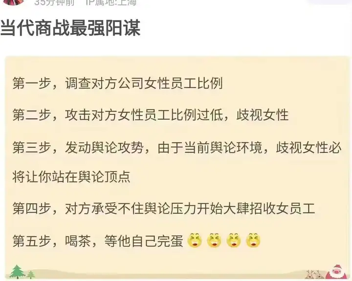 小仙女市场部的负责人想追星(这个人的职位一定不低,具体为什么不解释)。于是和笑果签订了商务合同。杨笠只是附带的一个人之一。为什么这么说。道理很简单。我们这个不到一千个人的小公司(美国某上市公司),市场和法务部门都有严格的规定,明确告知各国什么红线不能碰,什么样的艺人不能请。我不信他们京东没有这种guild book。请笑果这样自己身上的雷数不清的公司做商务,要么是自身籍籍无名需要恶名打开市场渠道的;要么就是老板公款追星,没有第二种可能。