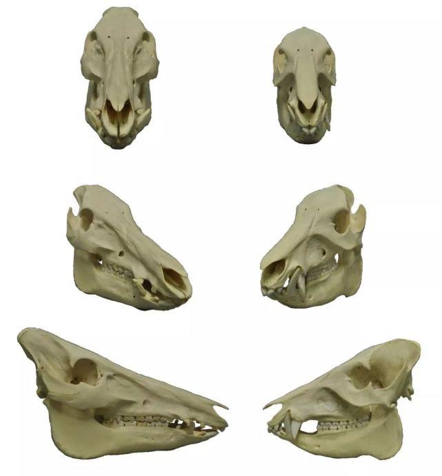 西猯的獠牙是直的,且咬合时能紧密贴合。