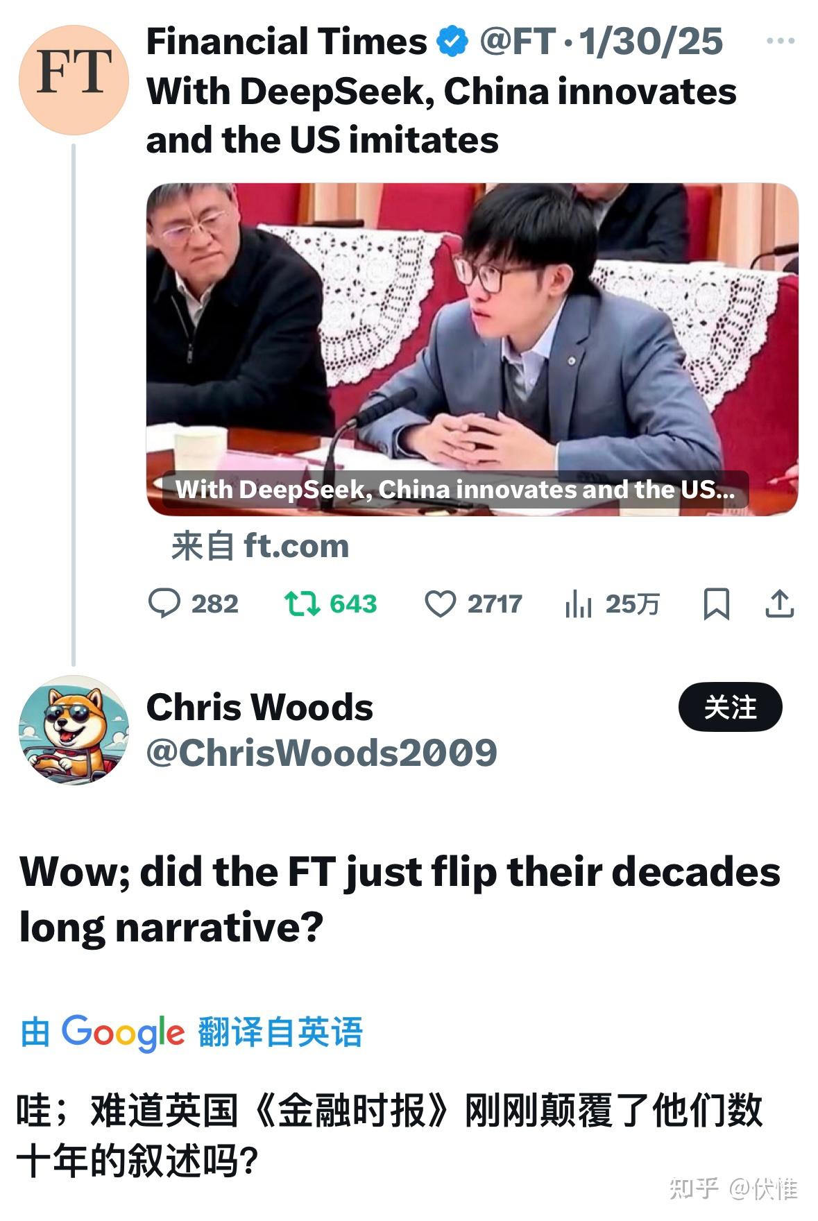 “中国通过DeepSeek进行创新 美国进行模仿”