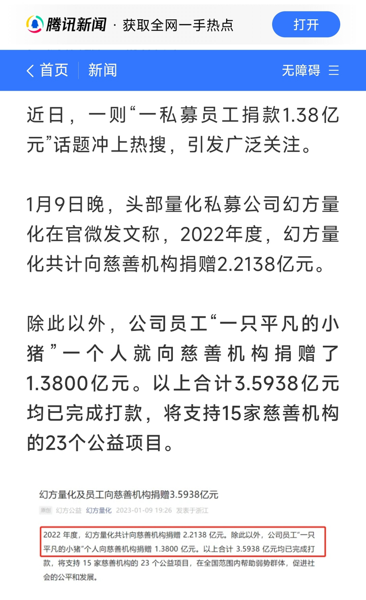 2022年,员工“一只平凡的小猪”共捐款1.38亿元 来源于腾讯新闻 “一只平凡的小猪”实际付款人梁*锋 来源于新浪财经 查看全文>>
