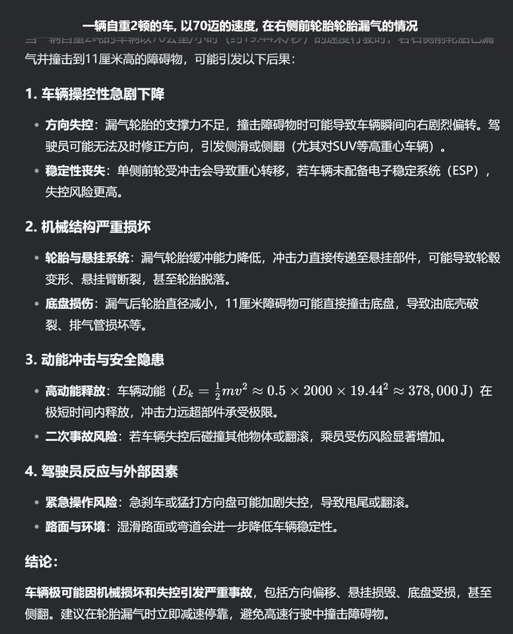 我开了十来年的车。如果时速70通过这样的路面,就会出现轮胎爆胎、轮毂受损,悬挂受损,摆臂断裂这么多问题,而且这个车还算是新车。