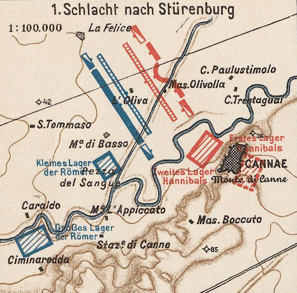 还给出了施蒂伦贝格(Stürenburg)版坎尼上游左岸决战假说。