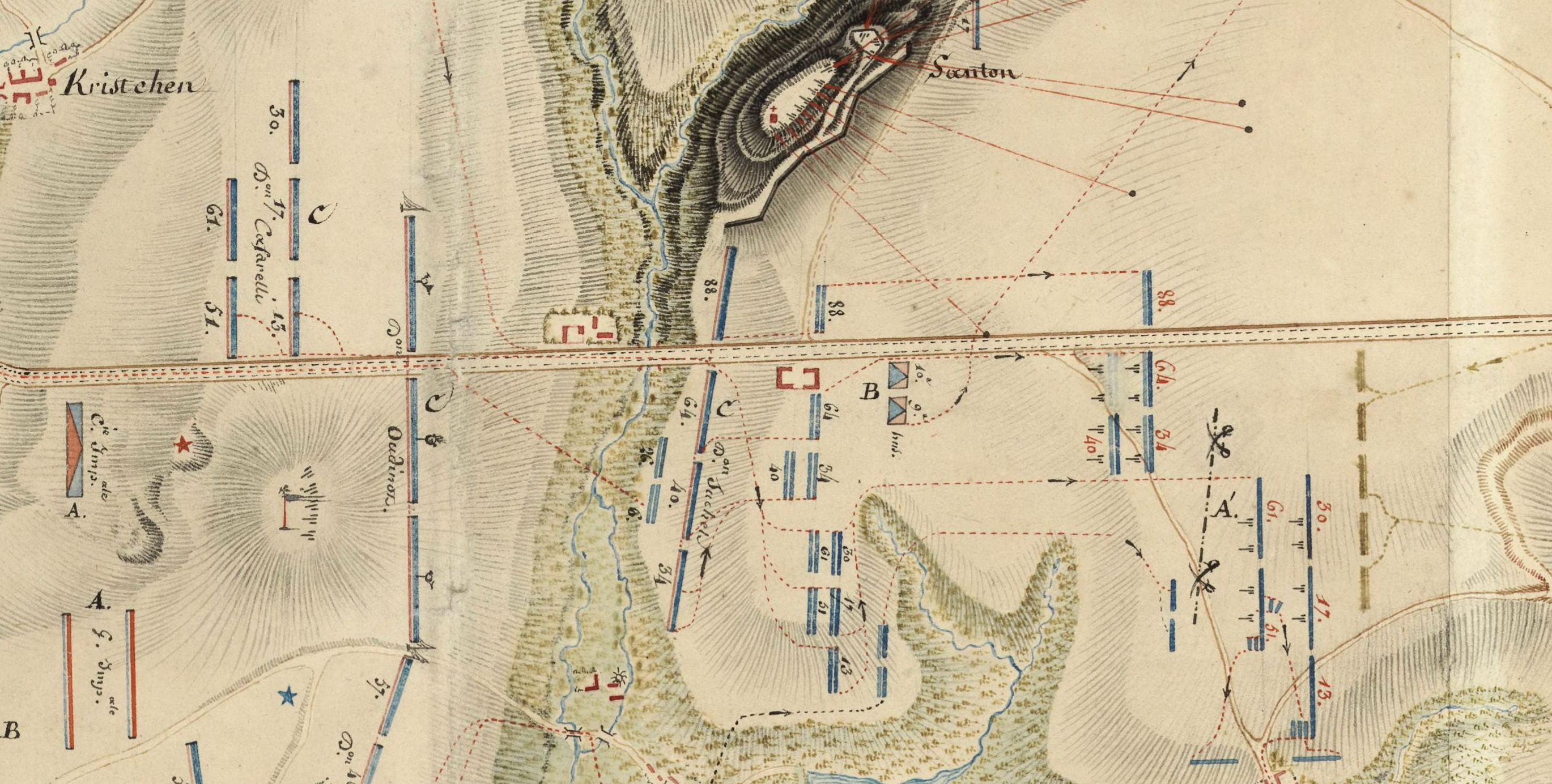 然而,像奥斯特利茨这么复杂且持续将近一天的大战,就很难像亚伯拉罕那样确切判断具体局部战斗的发生位置和参与单位了。