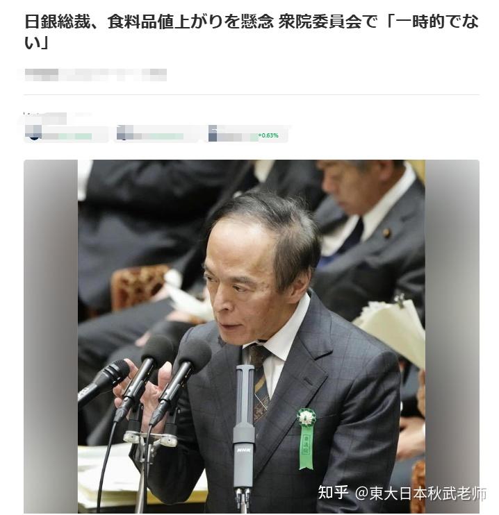 刚刚,日本央行总裁担忧食品价格上涨 在众议院委员会上表示“并非暂时现象”