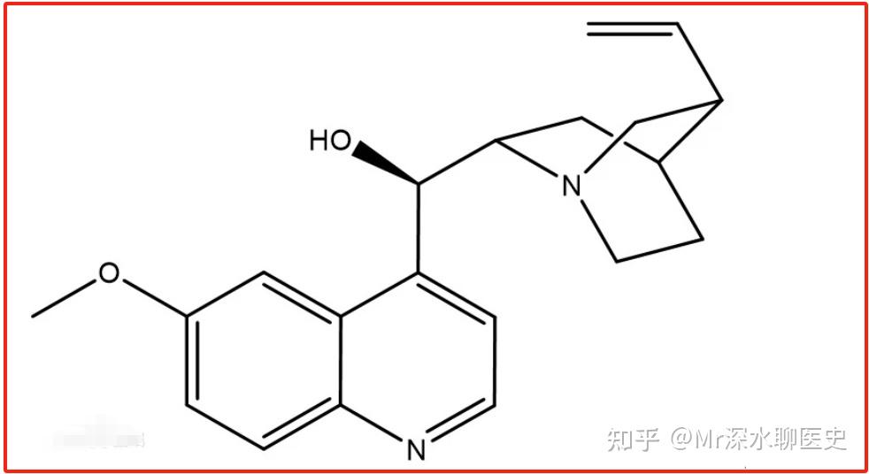 然后在1907年奎宁的化学结构式C20H24N2O2又被确定下来