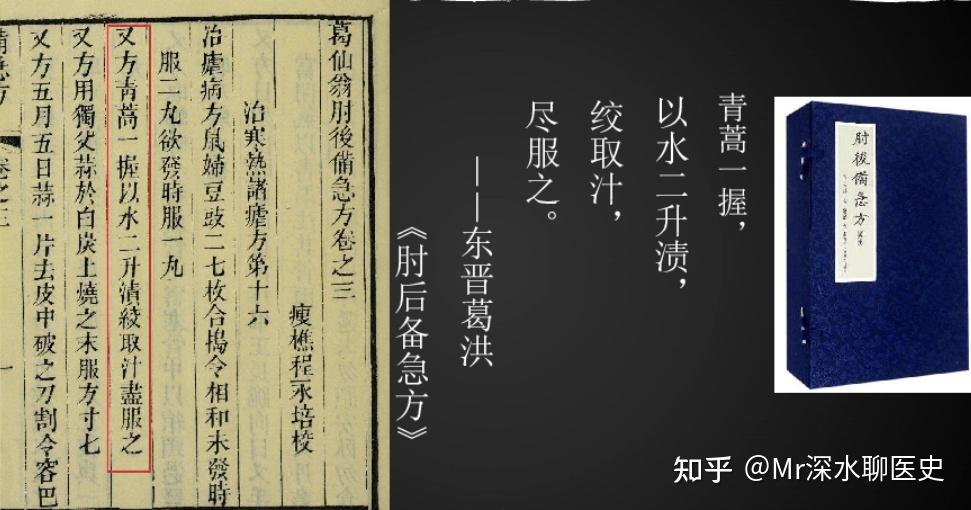 葛洪的《肘后备急方》里记载了“青蒿一握,以水二升渍,绞取汁,尽服之”可以治疗疟疾,这原本就是如假包换的中药