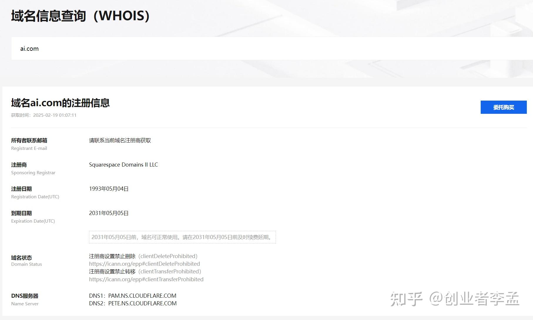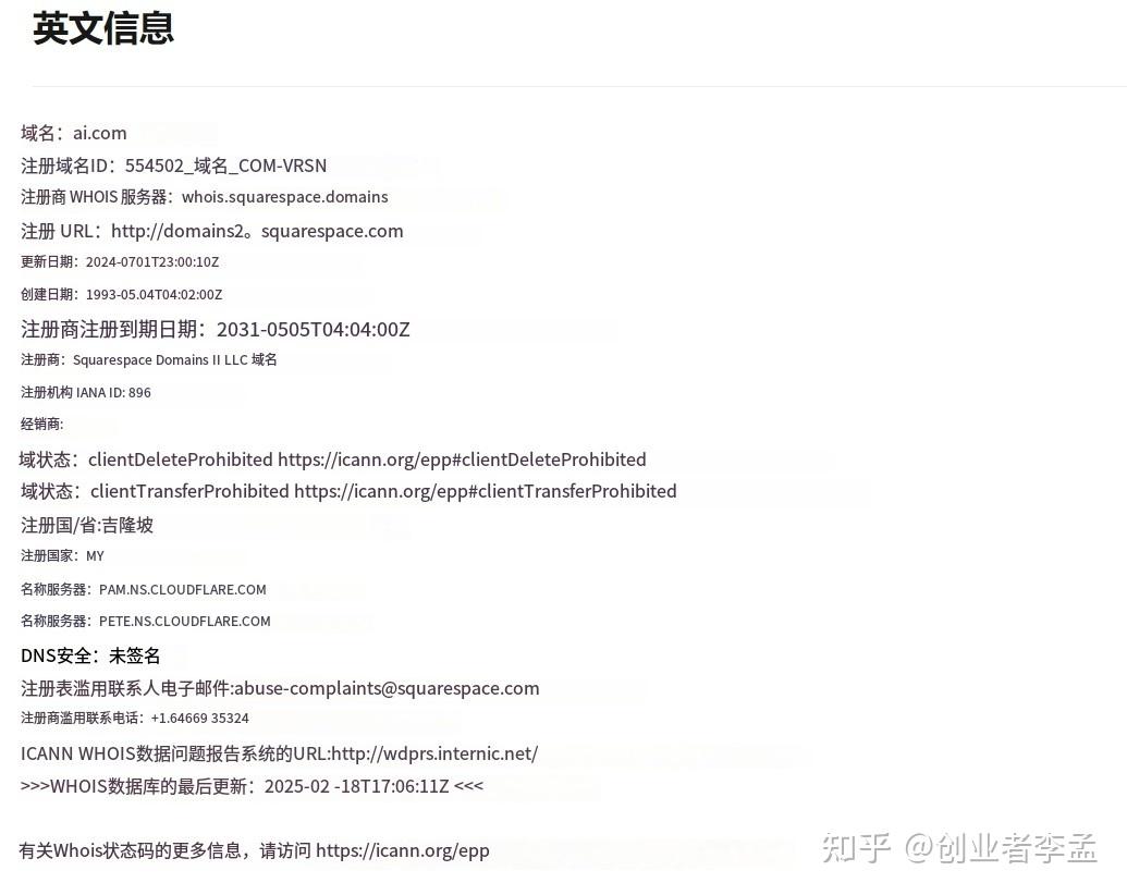 只能说deepseek得到了http://AI.com域名的持有机构认可,于是将域名做了重定向!毕竟之前这个域名还指向过ChatGPT和马斯克的X AI。通过域名信息查询我们发现这个域名注册于1993年,到期2031年!按照WHOIS信息显示注册地是在吉隆坡。