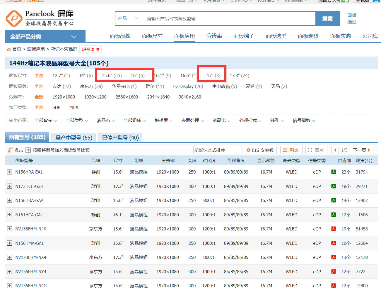 按照屏库网统计数据,以144Hz这个主流刷新率为筛选条件,15.6英寸有55个方案可选,17.3英寸有24个,上游肯定啥好出货+售后率低就研发啥。