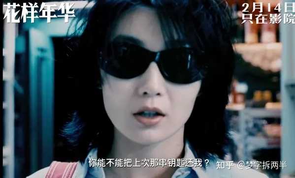 观众需要从右到左读竖排字母,这和空镜方向相反。两者结合起来的寓意:花样年华已经过去,他们回不去了。