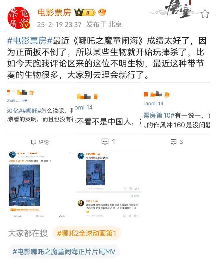 人红是非多,在我们热血奋起为哪吒2打榜出力出钱的时候,不只是国外恶意,国内的很多同行大佬也越来越有针对性的在挑起争端。这时候闭关,少说直接变成不说,自己家里开心庆祝不要太棒!!!