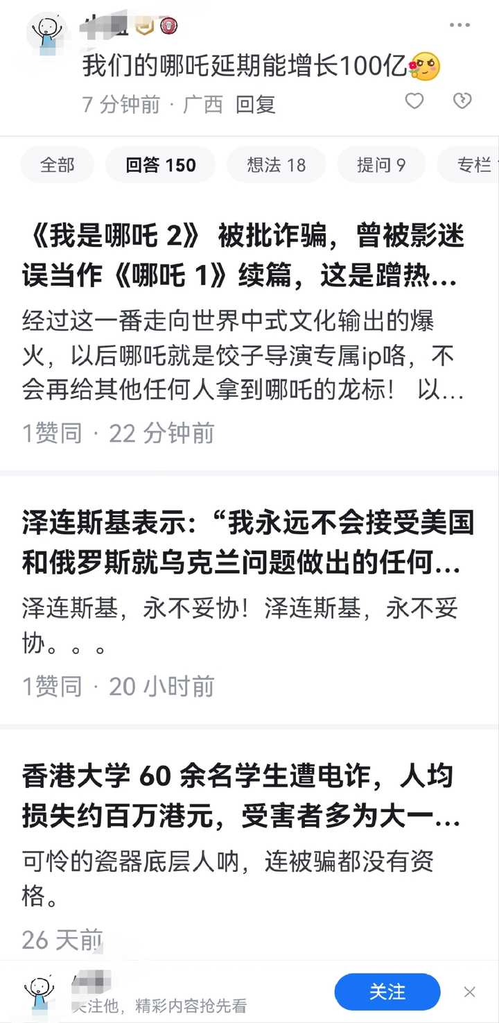 当然挑动捧杀情绪的领头者,肯定也有国内其他资本参与,毕竟哪吒瞄准的是春节档,而其他拍的质量不过关的电影,只是想借助春节档这种集中观影的档期魔法捞点钱就走的片方最怕这个了,试想以哪吒现在这个最后可能达成2部两百亿级的ip实力,下回再来春节档,不就妥妥挡了其他人的财路吗?最好的办法就是在饺子漫长创作的空档期不停泼脏水让这个ip烂掉,这样好给他们的电影让路免得圈不到钱罢了。