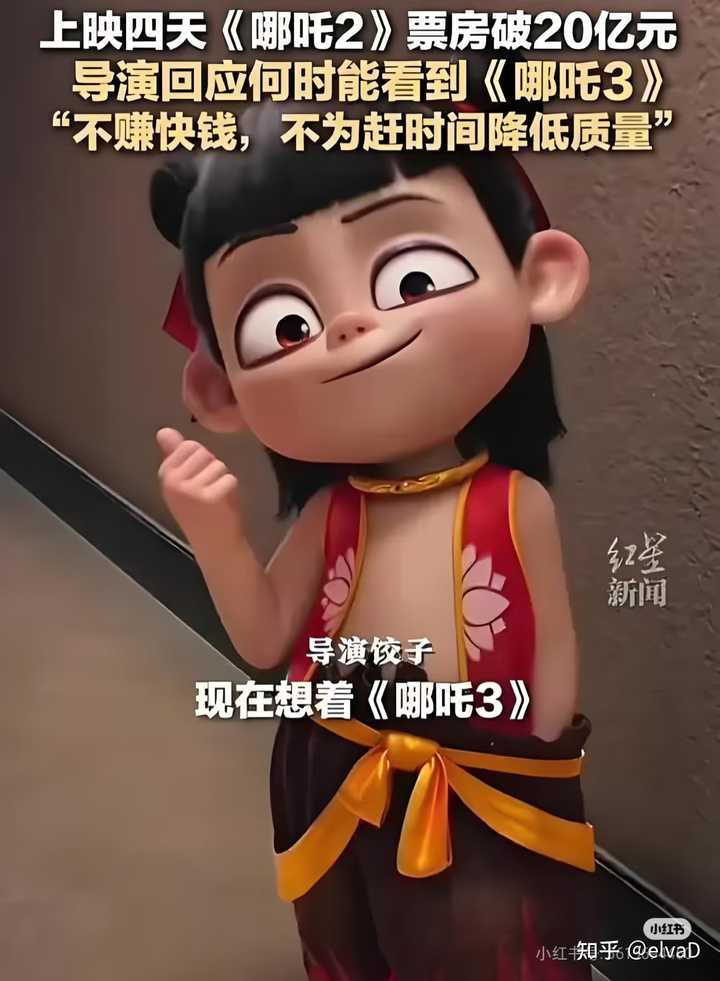 这次哪吒2的火爆,按照国内影视行业的风格,必定把所有能挣的都要提前展开。很有可能2028年底由央视牵头推出“中国动画新纪元”的纪录片,特别针对哪吒3推出纪录片+定制综艺的组合方针为影片上映预热;28年全年可能各种为了哪吒3上映准备的综艺同步开启,比如选秀声优等等,针对哪吒的衍生品,各类品牌联名等等也会同步预热开启,很有可能搞个美国同步上映。