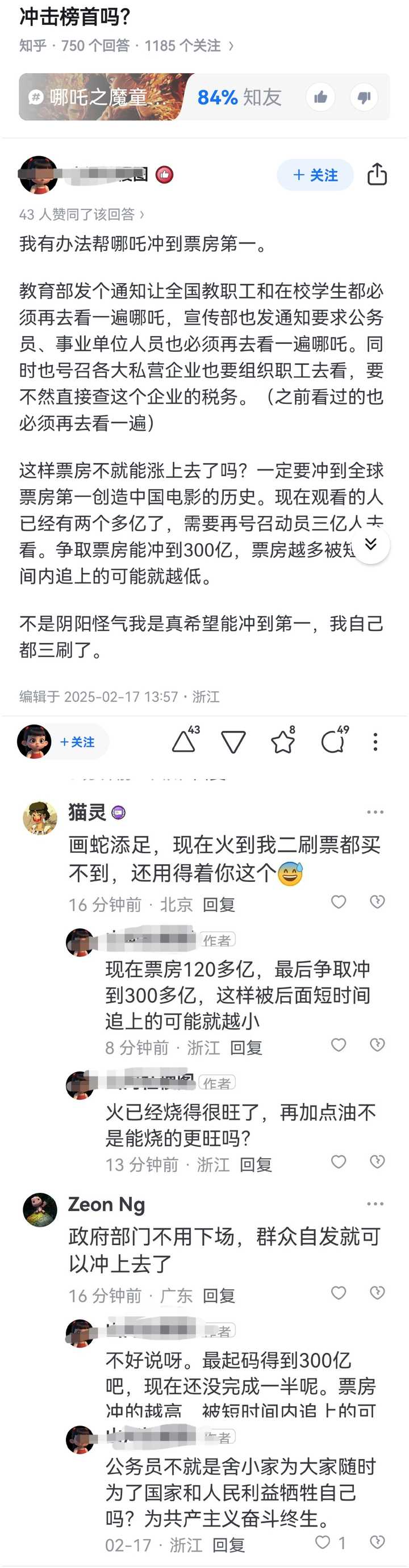 关键猫眼刚开完分析会,哪吒二刷占比也就8%,三刷及以上1.2%,先不说其他影片不都有重刷的人,就让你们10%不还是百亿多,你们究竟在义愤填膺什么?当年泰坦尼克号各大单位社区组织观影的时候不说了,阿凡达首映的时候老婆婆给儿子女友裹棉被通宵排长队不说了,复联四时一波一波地刷情怀不说了,只是想借此机会踩一脚中国电影罢了。