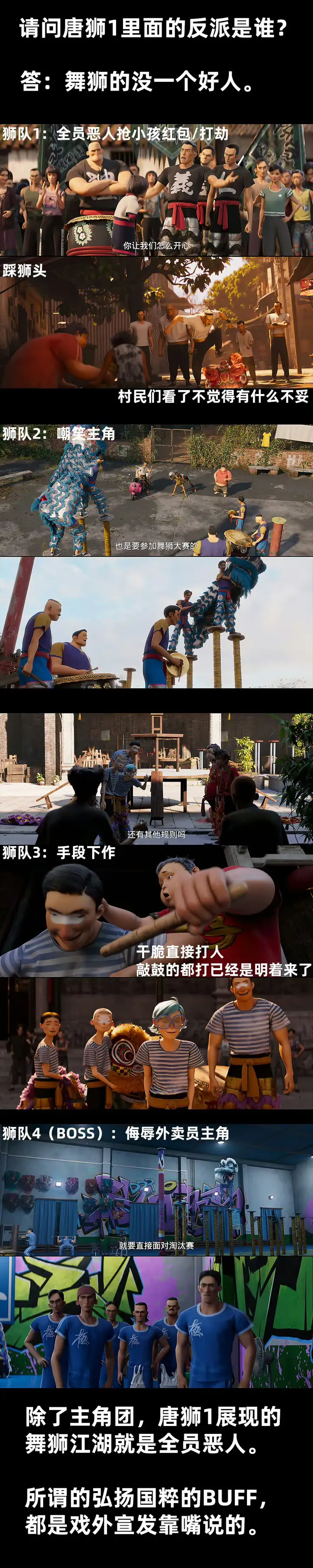 第六,在编导眼里,舞狮全部都是坏人都是比黑社会更可怕。哪是不是在黑这个传统文化?