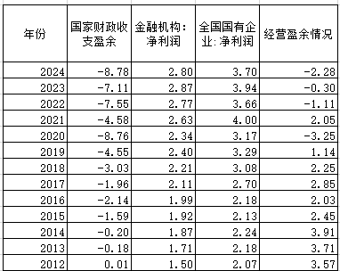 国家资本经营收益是负数,2023年,国家权益合计222.62万亿,对应的经营收益是-0.30万亿,2024年,权益234.85万亿,对应的收益是-2.05万亿。