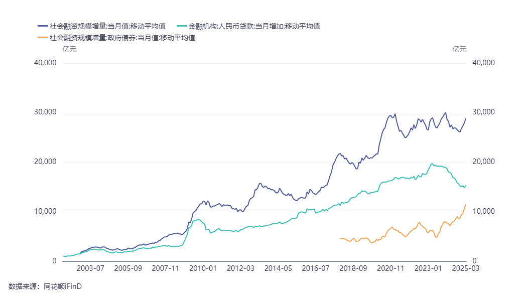 2015年之后,极限凯恩斯主义,则是以债务驱动经济为主,因此社融增量明显高于人民币贷款增量,社融增量与人民币贷款之间的缺口主要由政府债券来填补。