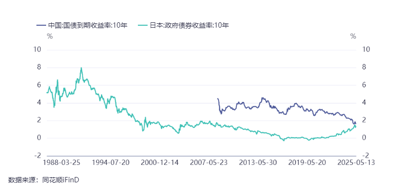 日本2012年实施安倍经济学,逐步推动日本走出下行周期,十年期政府债券收益率则继续下行,2016年和2019年两次探底后才逆转上行。