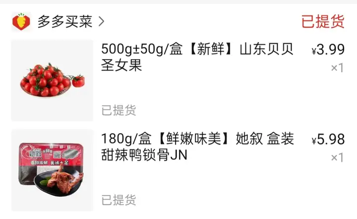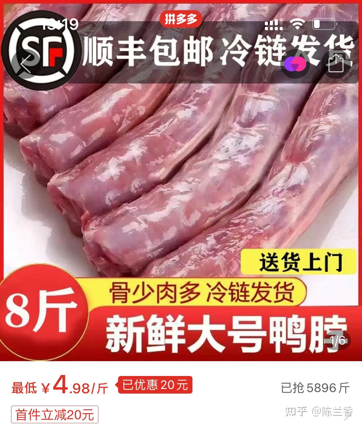 下图是今年俺在多多买菜上买的鸭锁骨,180g一份就算6块钱吧。