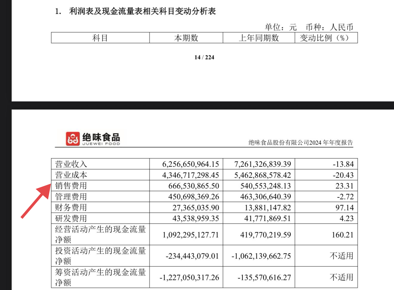 2024年,绝味食品的销售费用是6.67亿元,这金额相比于其62.57亿营收,占比10.66%。