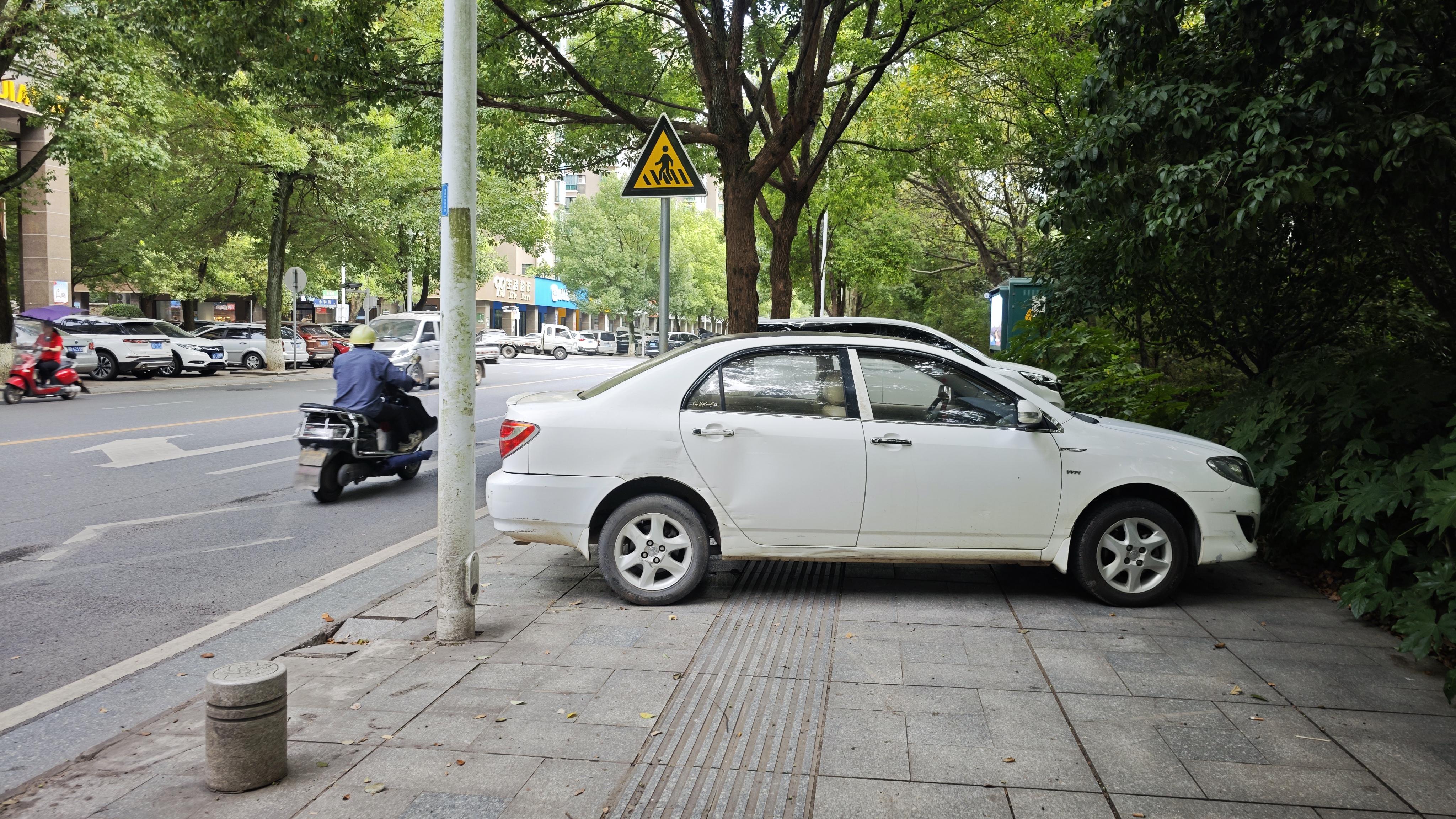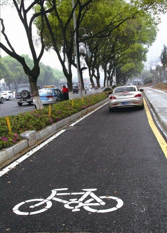 汽车霸占非机动车道、人行道、盲道。
