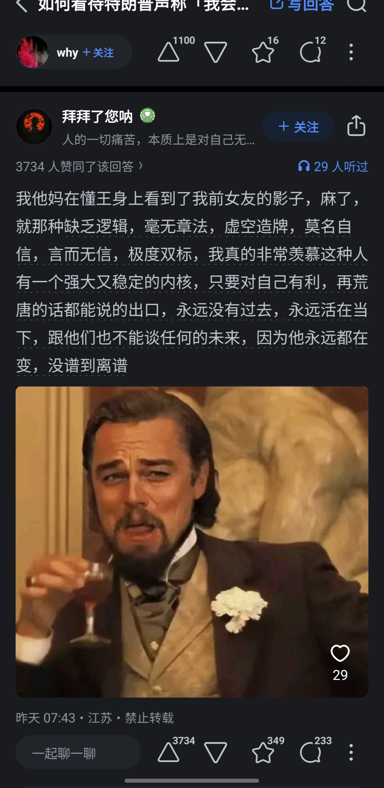 这位答主的评价我感觉可以贯穿懂王这四年所有言论行为了
