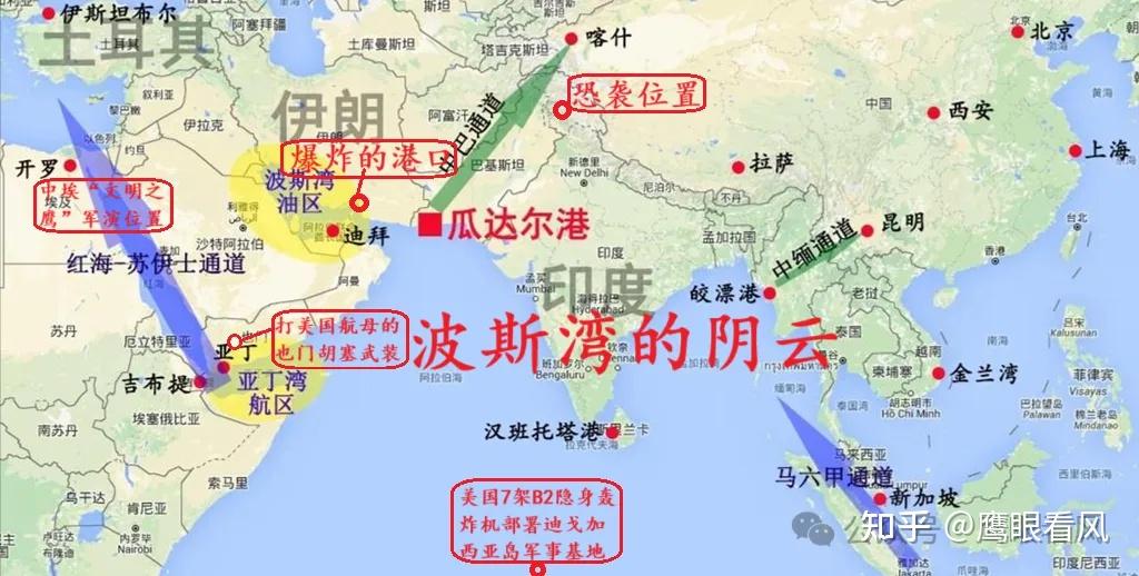 敏感区总是敏感的,所以一次恐袭就让印巴两个拥核国家关系就突然崩塌了。美国伊朗正在谈判,美国印度也在谈判。印度、巴基斯坦是邻国长期对峙,两国又都是中国的邻国。伊朗又是巴基斯坦的邻国。中国战略运输机罕见跨过波斯湾和红海落地中东埃及,进行“文明之鹰”军事演习。巴基斯坦的瓜达尔港是中国从巴基斯坦租了43年港口,是中俄辐射中东伊朗的重要支点。美军1/3B2战略轰炸机部署迪戈加西亚岛,该位置正好超出伊朗导弹射程。