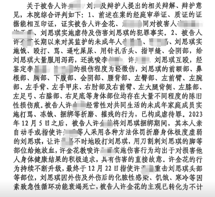 本来还有一张截图是小女孩被打死当天的判决书内容,写的是当天小女孩已经极度虚弱,其他三个养子都去跟这个后妈说不能再打了,这个后妈不仅不听,还让其中一个小孩拿着棍子打被害小女孩的头,打轻了她还不满意,最后小女孩浑身抽搐,她才把小女孩抱到床上去,换了干净衣服,送往医院,还删除了客厅监控,(这张截图好像被删了)