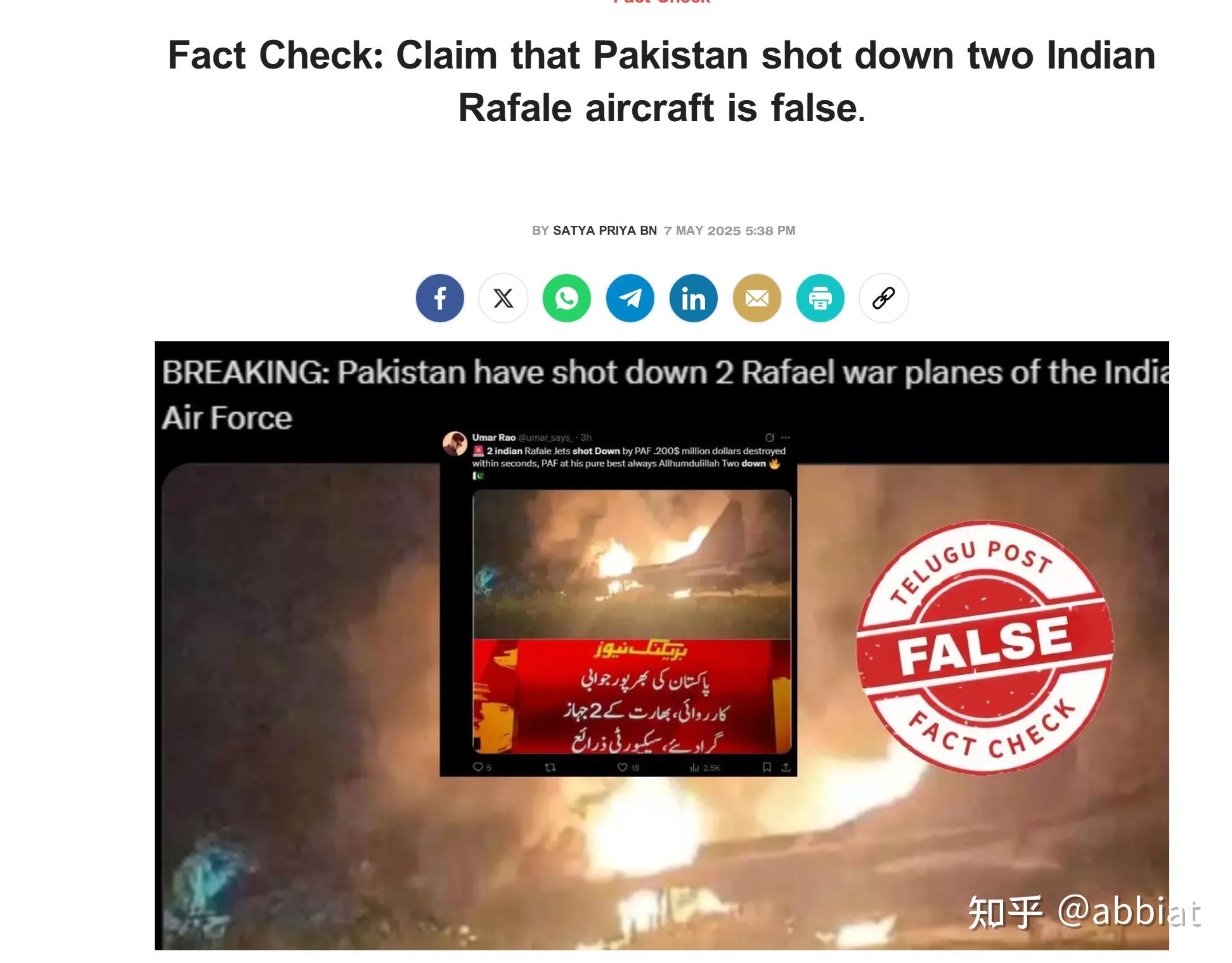 ——事实上巴基斯坦方面公布的视频都是假的,这个已经在X(原来的推特)上被人揭穿了。比如巴基斯坦方面公布的被击落的印度米格-29战斗机的图片来自于 2024 年 9 月在印度拉贾斯坦邦的巴默市坠毁的一架米格-29战斗机。