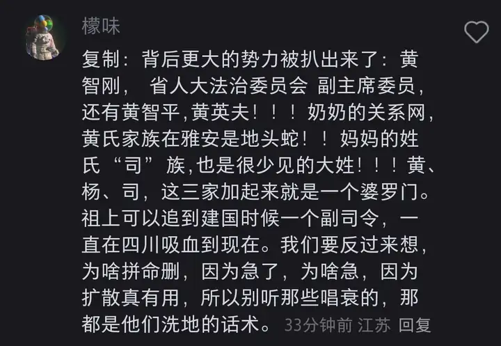 2013雅安地震 ,爸爸负责灾后重建对外招标工作,2014十月就有500w开影视公司了,这个公司一开始是法人是舅舅,16年变成妈妈,17年爸爸辞职(爸爸单位正科级),离职后公司法人立马变成爸爸了,这个公司是谁的很明显了。2020年4月趁着疫情1000w注册了生物公司,大捞特捞。一次地震一次疫情,发国难财,可真会挣啊。普通人倒卖口罩都要进去,注册个公司公然捞金却有人要洗正当[微笑R]还有他舅舅疑似走私证件被判了5年[微笑R]