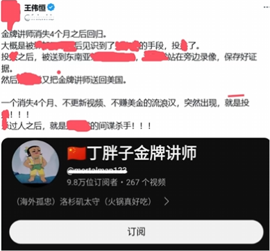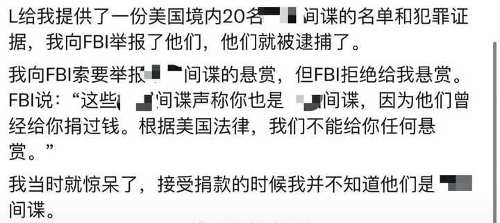 同时,王靖渝还热衷于扮演欧美政府的官方机构,比如大使馆和FBI。所以你看到甜甜圈提到的任何美国/欧洲的政府机构的消息,比如什么一口气抓了20多个老中特工,但是因为这些特工给甜甜圈捐过钱,所以fbi不给甜甜圈发赏金,这些一律可以认定为王靖渝假扮的。(有一说一,fbi赖掉赏金倒是挺真实)