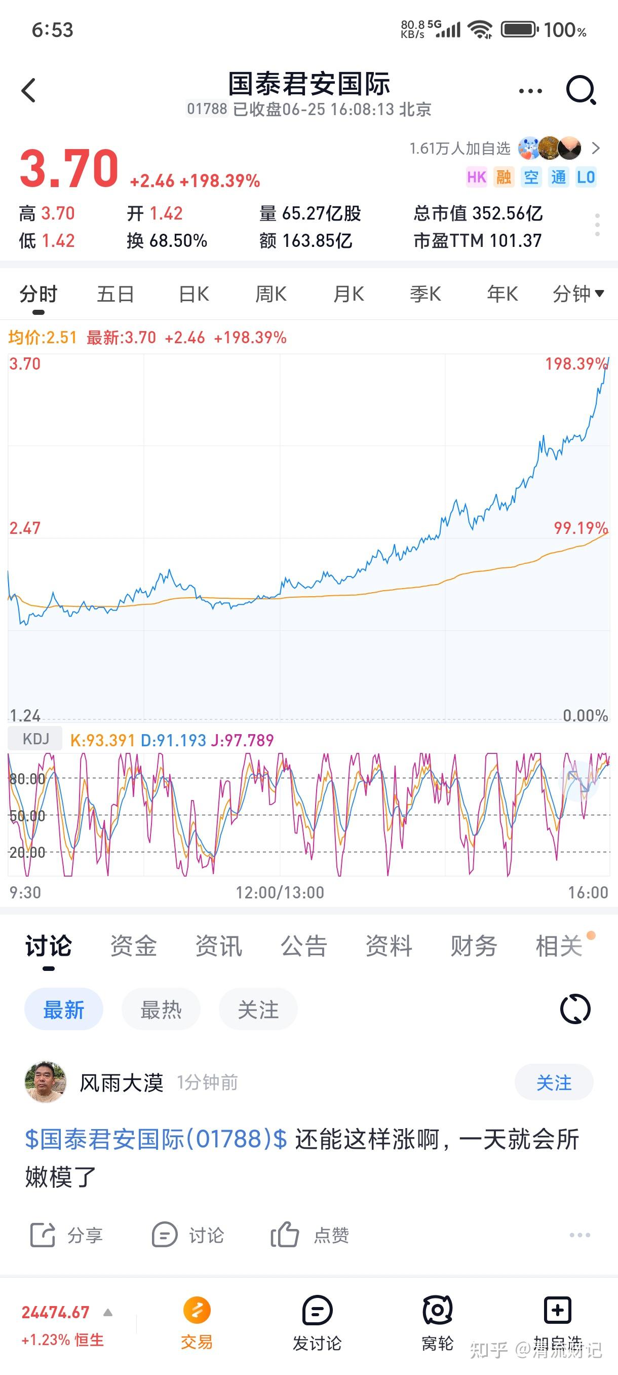 今天金融股集体大爆发。多元金融、券商、跨境支付、银行等板块大幅拉升。消息面上国泰君安国际成为了第一家获批的,可以提供全方位虚拟资产相关交易服务的香港中资券商。这个虚拟资产包括比特币、稳定币等加密货币。今天国泰君安国际港股暴涨80%,直接带火了整个金融科技、券商板块。