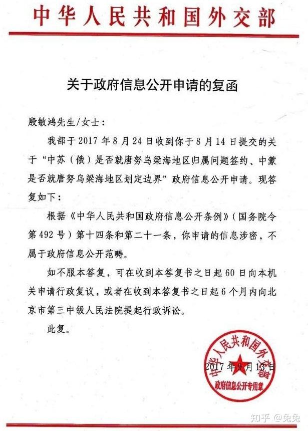 1948年5月7日,南京国民政府通过中华民国驻苏联全权大使傅秉常提出严正抗议,发表声明“唐努乌梁海是永远属于中国的神圣的领土”。