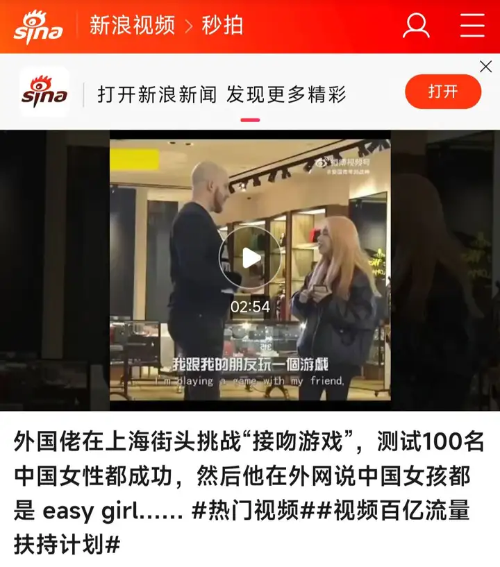对比一下外国人挑战随机亲吻100个中国女人并成功的案例。