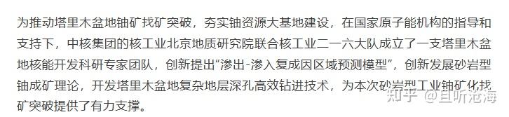 在中核集团为这次成功找矿写的新闻稿中,我们也发现了对“渗出成矿”作用的提及,