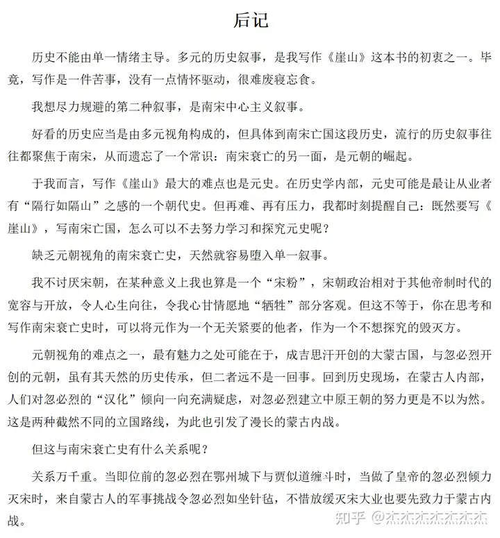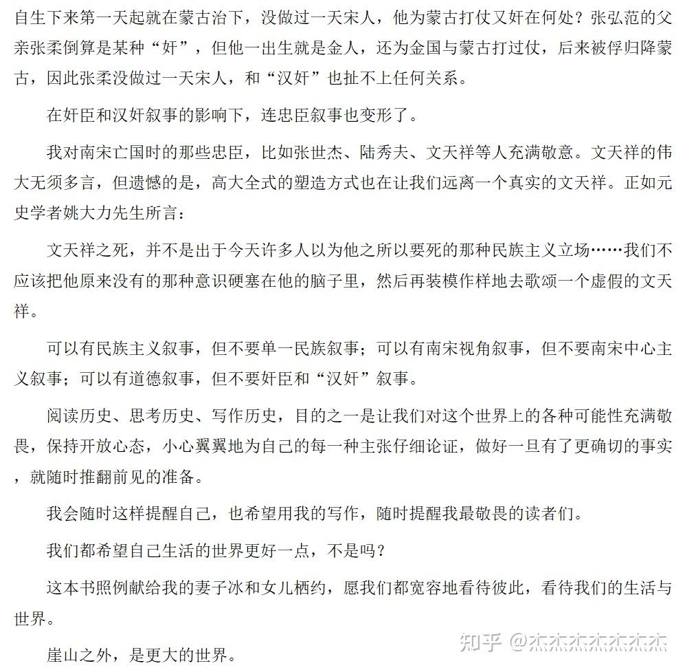 崖山之外,是更大的世界。其实作者写到这里只是单纯的劝勉大家用宽容视角看待历史人物。