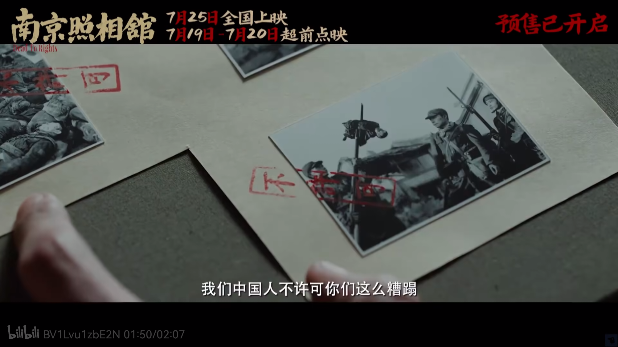 这也正是《南京照相馆》对日军的塑造要点:影片中的日本侵略军杀人,是用各种各样的方式残杀中国军民,丧失人性、变态至极。可在不杀人的时候,他们就要讲人情世故,家里有背景的摄影师不能去轻视;他们就要讲舆论影响,对暴行照片不能让流出;他们就要讲长远发展,对中国人民不能不欺骗。