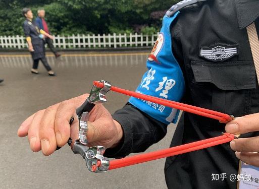 原来,大爷是黔灵山的管理人员,由于黔灵山的猴子生性“顽皮”“泼横”,时常会发生猴子“抢人”、“打人”事件,这位大爷作为管理人员,在游客多时为防止猴子“抢人”、“打人”会用空弹弓来驱逐猴子,避免猴子伤人。
