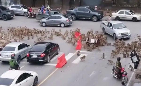 泰国泛滥的猕猴:打群架、入室抢劫、威胁交通/治安 这是不同灵长类种群内部的社交网络效率[8]。
