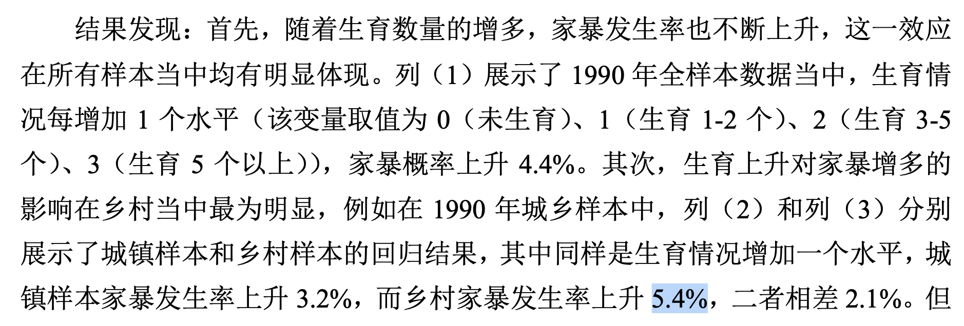 莫名其名的定义,很大可能有p-hacking的嫌疑。表5.1的结果也显示,2010年的结果其实已经不显著了。无论是practical significance还是statistcal significance。按照这种趋势,说明2020年家暴的情况已经消失了,那她的研究还有撒狗p价值?