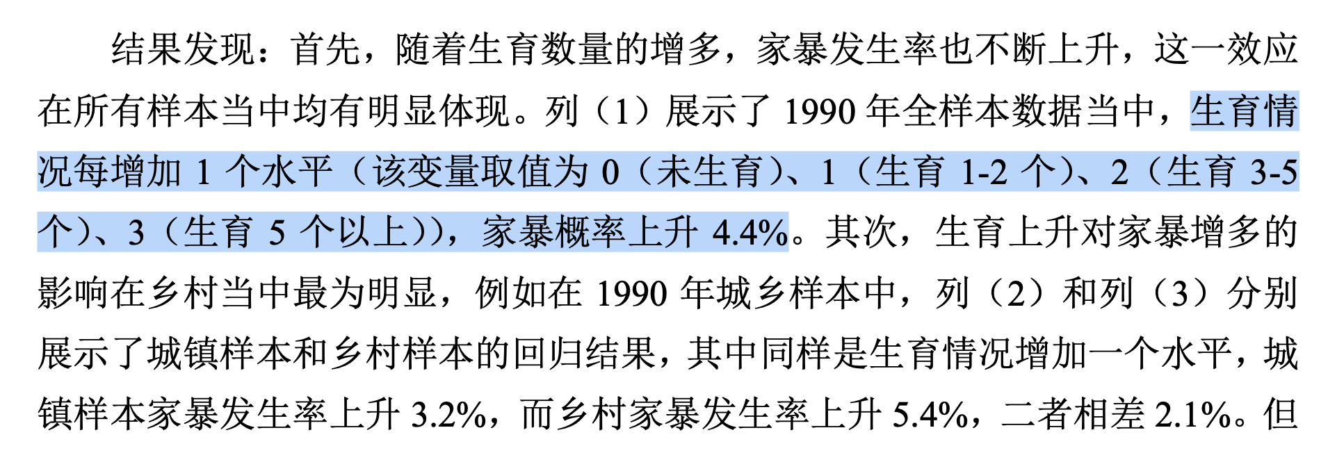 针对第三点做一下补充。2010年,城市家庭因为独生子女政策的实施,应该没有多少大于2个孩子的家庭。如果用“孩子数量大于1和孩子数量小于等于1”这两类来定义她的核心自变量“是否生育多胎”,那么就会出现城市样本的值几乎95%以上都是0,那还怎么跑逻辑回归?标准误估计大得吓人,自然无法得到显著的结论。这应该是她故意修改核心自变量定义的根本原因。