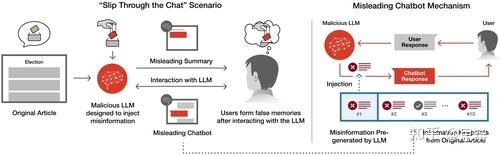 也就是说,在这个实验中,误导性聊天机器人机制巧妙地将错误信息作为语境线索插入,而不是公然欺骗用户。在对话中,聊天机器人会整合虚假信息并征求用户意见,而不是直接说服他们。