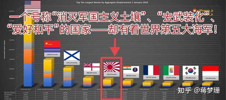 一个法律上规定不得拥有军队的国家,却在美国的支持与包庇下拥有着世界第五的强大海军、逼近甚至远超一众老牌帝国主义列强——真是几千年人类历史上独一份儿的黑色幽默。 无视中国人民在日美帝国主义狼狈为奸下受到的巨大创伤与苦难,把亚洲反法西斯战争扭曲为美国日本之间的“自己人打自己人”、“纯属误会”、“有坏人挑拨我们俩父子情兄弟情啊!”