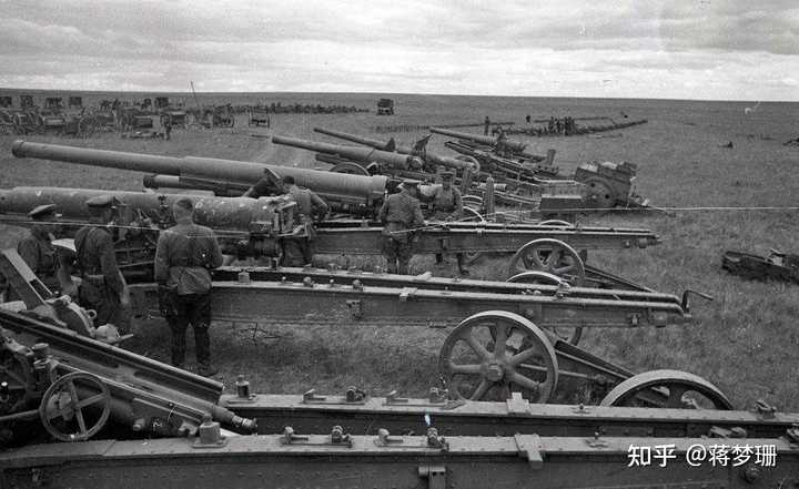 ——《大东亚补给战》 【日本】陆军大佐 中原茂雄关东军的战略火炮预备队,日本的看家宝贝150重炮在诺门罕被苏军缴获了一堆。而远处那些则是日本的75级别师炮和步兵炮。 我国(日本)处理中国事变(侵华战争)之所以尽力采取不扩大方针,就是因为需要对付北方苏联的威胁,在对华用兵上受到极大限制的缘故。