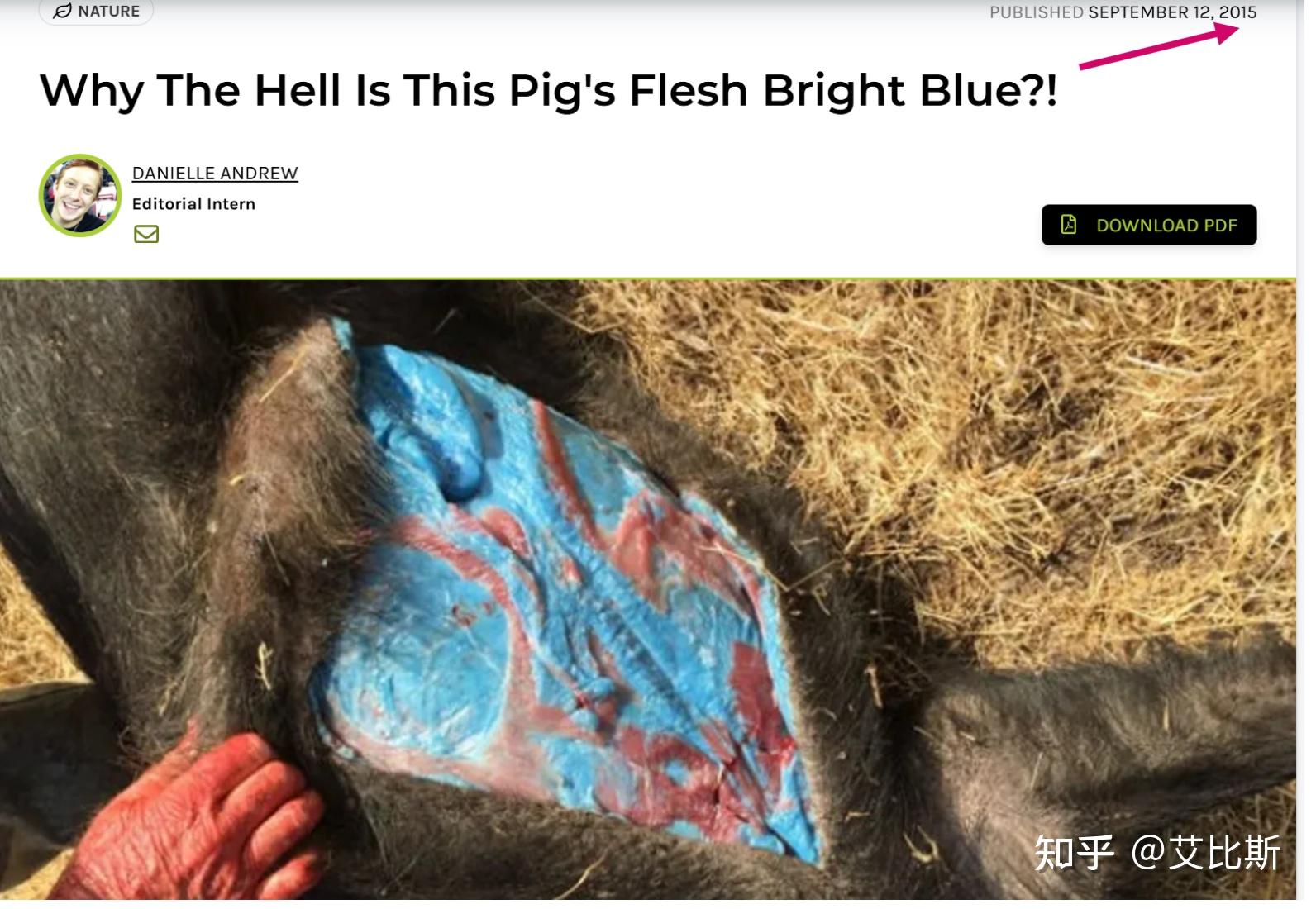 据加州鱼类和野生动物部门称,2018 年的一项研究发现,接受检测的野猪中约有 8.3% 带有抗凝血灭鼠剂残留的痕迹。大部分的野猪不会有明显的蓝色,只是这种蓝的发亮的猪应该是直接吃了太多杀鼠剂,在脂肪组织攒了太多染料代谢不出去导致的。