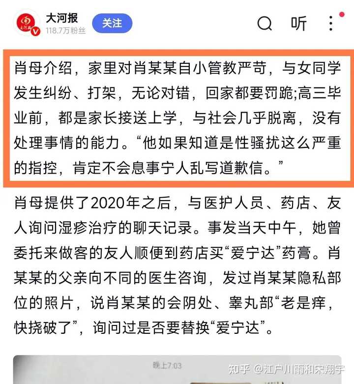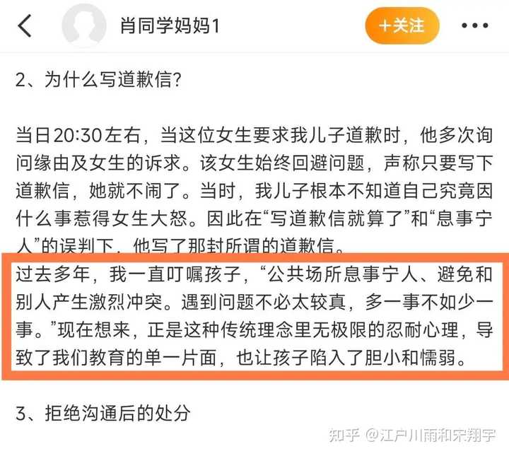 而肖同学,如果他记住的不是被教育的“在外面一定要息事宁人”“和女生发生冲突回到家会被罚跪”的不公正的家规,而是能够从小知道,自己被诬告出了事情之后,是自己的母亲全程冲在前面,替他搜集证据,替他去打官司,替他讨回公道的话,那他或许就不会在面对突如其来的诬告时陷入那样的无助与自我怀疑,更不会在本该为自己据理力争的年纪,因为对家庭支持的绝望而选择用沉默和退让来应对外界的不公。
