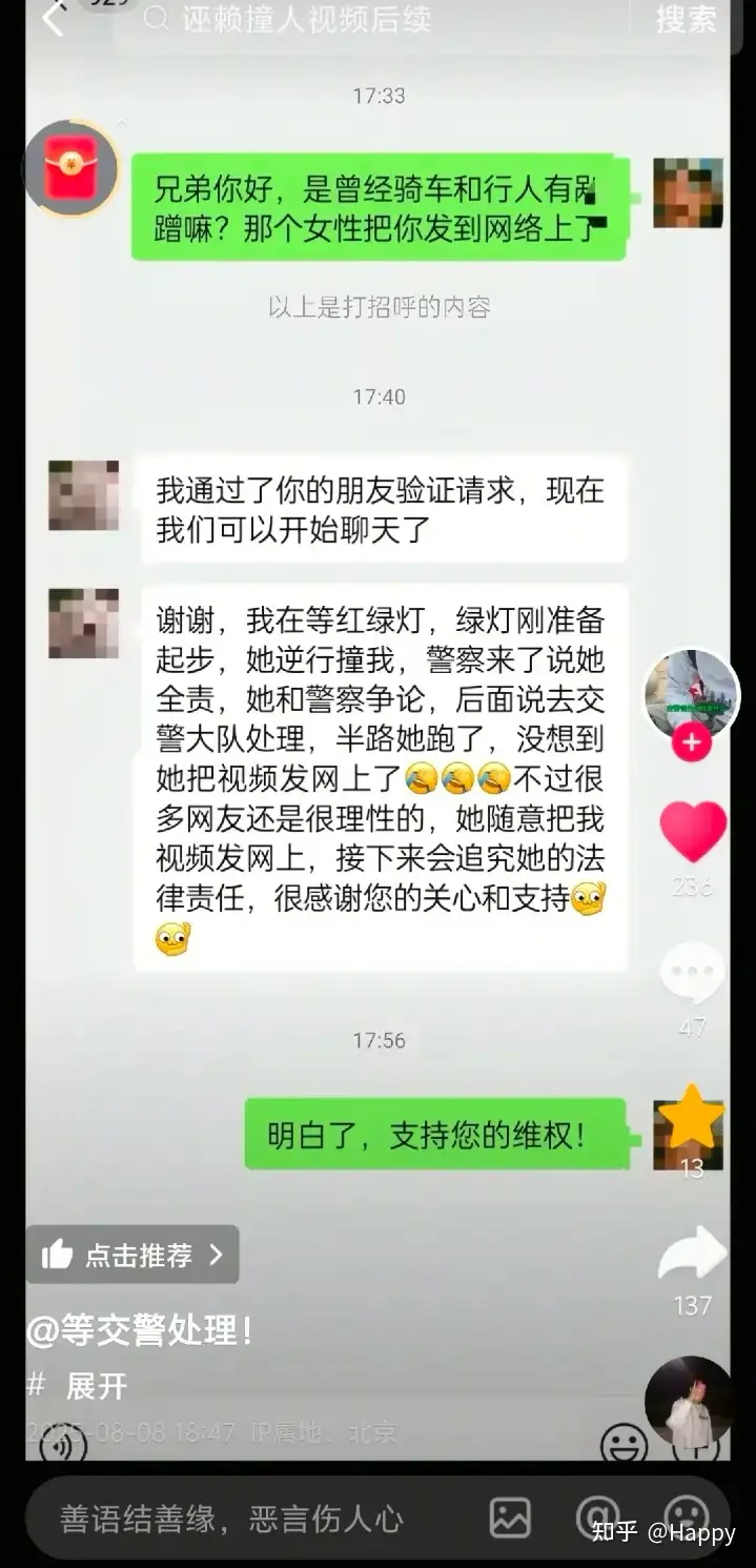 因为,面对一个不理性的诬告逼问,你越纠缠,事件就越是会越滚越大。所以面对诬告,当下最好的状态就是冻结,沉默,不扩大事态,等待第三方的介入。所以,那个小伙子非常冷静的坚持要引入第三方,坚持要听交警的处理,这是非常明智的做法。