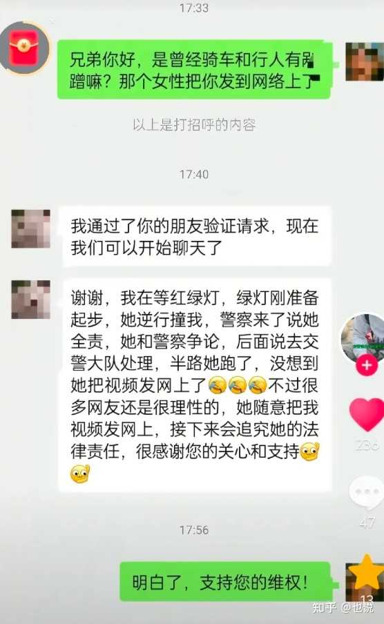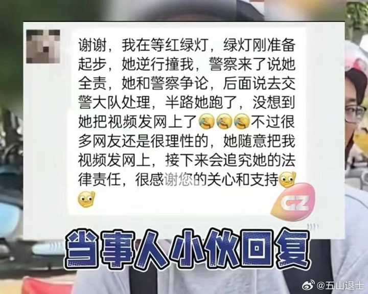 网友发出了这件事后续,女生逆行撞人,交警到场后定了她全责。