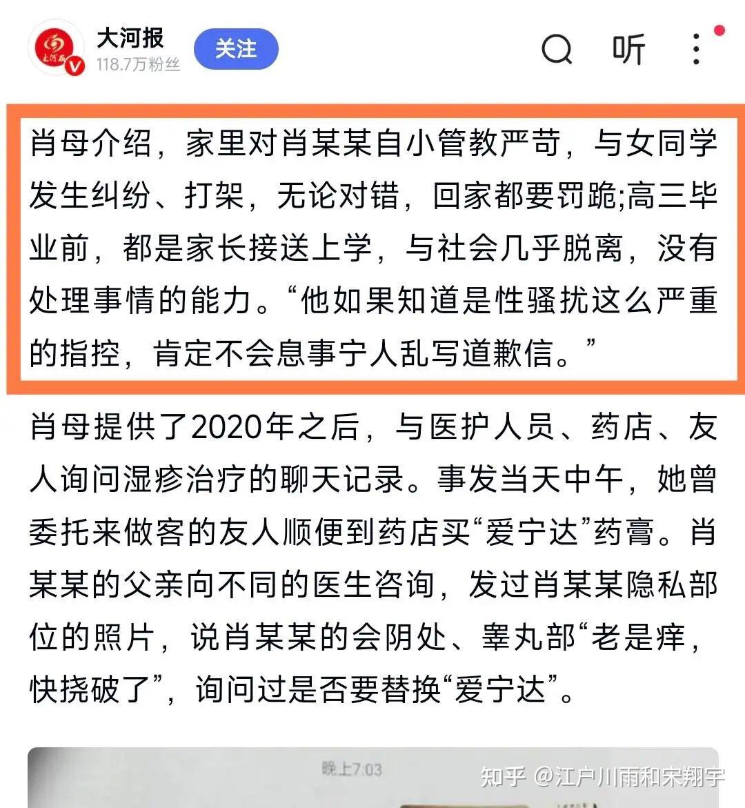 而肖同学,如果他记住的不是被教育的“在外面一定要息事宁人”“和女生发生冲突回到家会被罚跪”的不公正的家规,而是能够从小知道,自己被诬告出了事情之后,是自己的母亲全程冲在前面,替他搜集证据,替他去打官司,替他讨回公道的话,那他或许就不会在面对突如其来的诬告时陷入那样的无助与自我怀疑,更不会在本该为自己据理力争的年纪,因为对家庭支持的绝望而选择用沉默和退让来应对外界的不公。